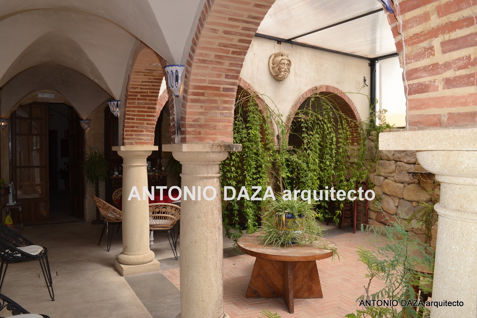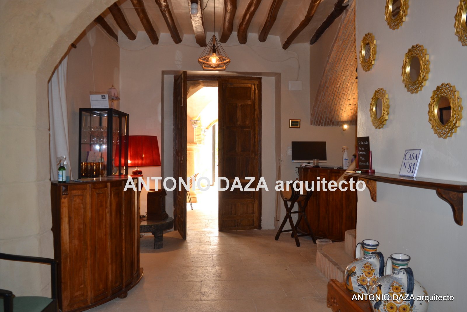 Se trata de una casa histórica totalmente rehabilitada y acondicionada a todo gusto de detalles. Está distribuida de manera que alberga 5 dormitorios-suite con sus cuartos de baños incluidos, una zona de estar y otra zona de comedor. Destaca su arquería porticada con arcos de medio punto sobre columnas de piedra que configura el espacio de comedor.