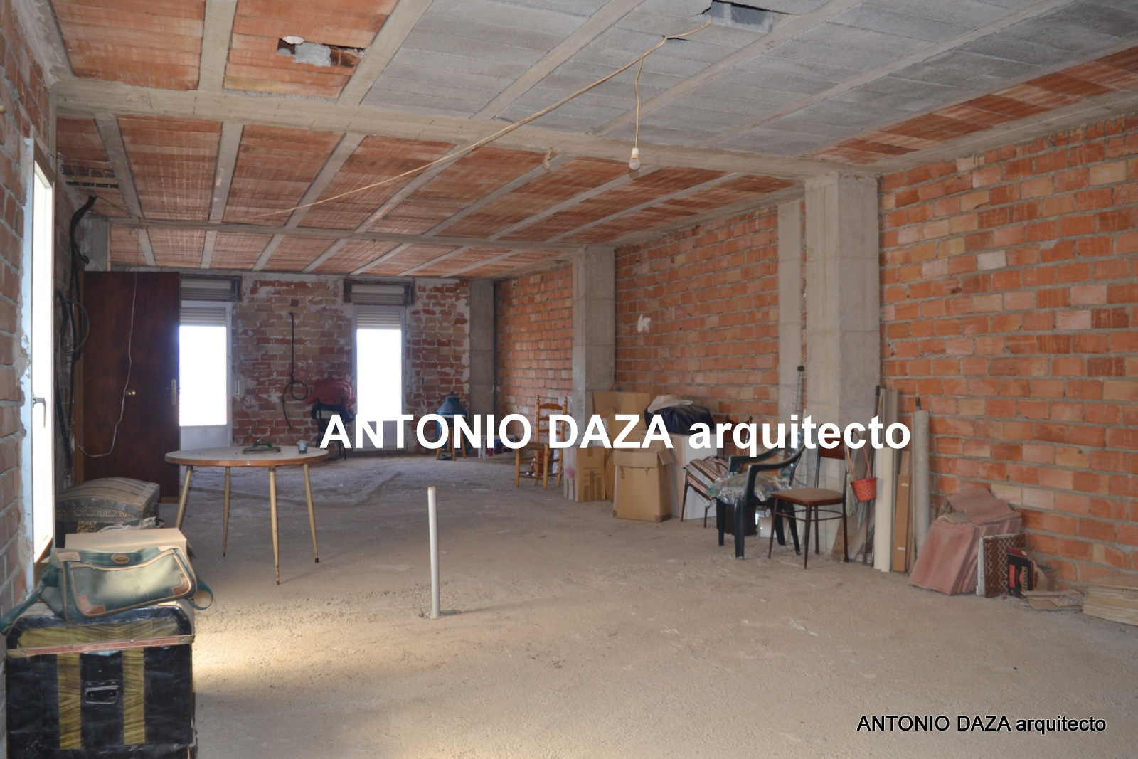 Se trata de una casa desarrollada en planta alta, con un gran bajo en la planta baja y una planta segunda diáfana preparada para un segundo piso. Es decir, se trata de un piso con un gran bajo destinado a aparcamiento, a almacén y cocinón con chimenea, y otra planta que se puede convertir en otro piso.